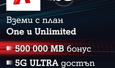 Новите мобилни планове на А1 са с фокус върху мрежата от пето поколение 5G ULTRA и достъпът до нея вече е включен във всички тарифи на телекома. Всички планове Unlimited и ONE предлагат достъп до 5G ULTRA за период от пет месеца, докато тези с безкрайни минути и мегабайти Unlimited са с включен достъп до 5G мрежата за целия период на договора.