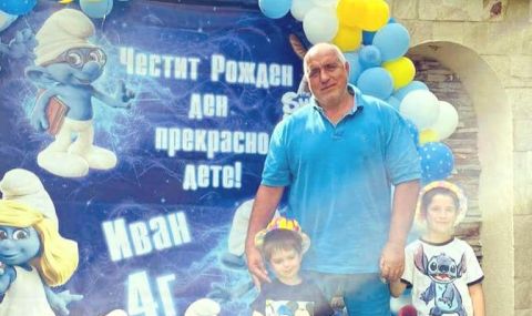 Борисов постна мил кадър от събитието, на който позира заедно с рожденика и батко му Бойко. Зад тях се вижда плакат със смърфовете и пожеланието „Честит Рожден ден, прекрасно дете! Иван на 4 години“.