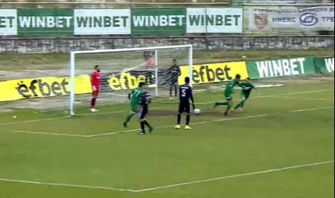 Точно след половин час игра дойде и най-чистото положение в мача до този момент. Тунгара получи в центъра на терена и с прекрасен пас успя да изведе Омар Камара зад отбраната на домакините. Фланговият футболист изелзе очи в очи с Красимир Костов, но не успя да го преодолее. Камара стреля, но вратарят на домакините спасява с отлична проява.