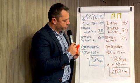 Според графиките цената тогава е била около 100 лева. Сега е в пъти повече. Народното събрание прие мораториум и нещата ще се изкривят. През април ще сме в по-тежка ситуация, отколкото сега. Ние предложихме компенсация от 75 на сто от 600 лева, което е разликата между базовата цена на КЕВР от 119 лв. и пазарната цена от 719 лв. Така бизнесът ще бъде компенсиран с 450 лева. Но със селски тарикатлък правителството са написали, че незнайно защо базата е 185 лв., а не тази на КЕВР от 119 лв. Те започват с тарикатлък и променят базовата цена и така се получават 400 лева компенсация. Но те слагат и една запетайка и казват не повече от 1/3 от пазарната цена, т.е. на бизнеса му се полагат 400 лева, но те казват не повече от 1/3 и това е 215 лв. При такава компенсация бизнесът каза, че няма да може да работи и много от предприятията ще затворят, коментира Добрев.