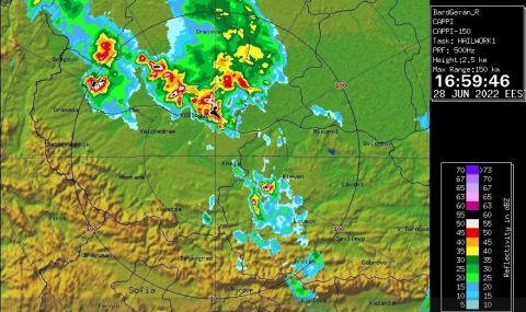 Две опасни бури удрят Северозападна България. Според радарите порой с градушки има в момента във Видин, съобщи Нова тв.