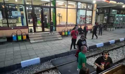 Заради агресивното поведение на феновете полицията е спряла влака на гарата в Своге, като двама униформени са се опитали безуспешно да се справят с буйните запалянковци.