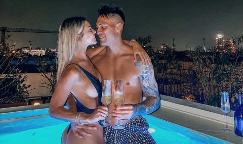 Лаутаро Мартинез и Агустина Гандолфо си прекарват романтично в басейна с чаша пенливо вино в ръка и притиснали кръшни тела един в друг.
