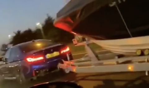 Както може да видите и от видеото, М5-цата тегли ремарке с доста голяма лодка, като въпреки това успява да вземе преднина при тръгването. В заводски вид M5-цата се задвижва от 4.4-литров осмак, който генерира максимум 625 конски сили и 750 нютон метра, които се предават към четирите колела.