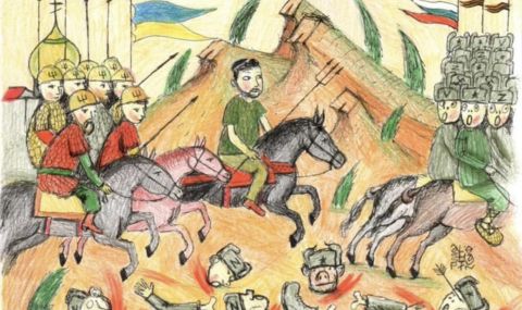 В профилите си в социалните мрежи политикът публикува изображение, нарисувано с моливи. На илюстрацията се вижда украинският президент Владимир Зеленски на кон, уплашени войници със символите „Z“ и „V“ на униформите си, както и ръцете, краката и главите на нашествениците, лежащи на земята.