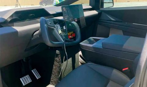 Съдейки по снимките, интериорът на серийната версия на Tesla Cybertruck ще бъде различен от представения по-рано прототип със същото име. Пикапът ще получи ново арматурно табло, иновационен волан вместо традиционния и голям дисплей, с който могат да се управляват повечето функции на автомобила.