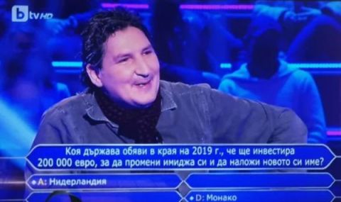 Участникът беше доста стъписан, когато компютърът му остави възможни отговори „Нидерландия“ и “ Монако“. В този момент той взе решение да използва още един жокер, но водещият го посъветва да разсъждава логично.