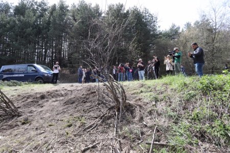 Първо, разследващите показаха т.нар. кратер. Оказа се, че поне на вид пораженията не са особено сериозни и мястото не прилича много на арена на взрив. От снимките е видно, че асфалтовата настилка е цяла, бордюрите на пътя – също. Без поражения изглеждат и близките до мястото дървета и храсти, макар че би било логично при силна ударна вълна (и огнен стълб 4-5 метра!) да има някакви щети. За сметка на това бяха показани дървесни стволове с леко излющена кора от отсрещната страна накъдето се смята, че са летели осколките.