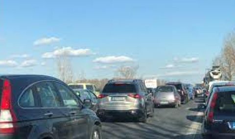 Ограничено е преминаването по активната и изпреварващата лента. Има огромно задръстване.