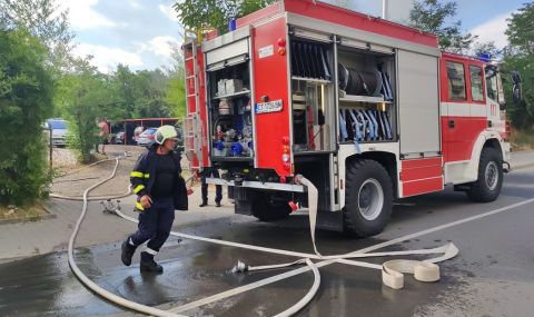 Пожарникарите са изгасили пламъците и са обезопасили района.