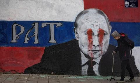 Графитът с лика на руския президент Владимир Путин в сръбската столица Белград беше коригиран от неизвестни лица, които заляха очите му с червена боя, символизираща кръвта на убитите и ранени украинци.