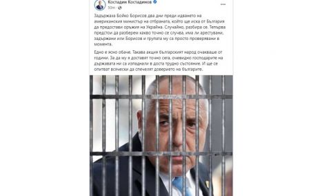 „Задържаха Бойко Борисов два дни преди идването на американския министър на отбраната, който ще иска от България да предостави оръжия на Украйна. Случайно, разбира се. Тепърва предстои да разберем какво точно се случва, има ли арестувани, задържани или Борисов и групата му са просто проверявани в момента.