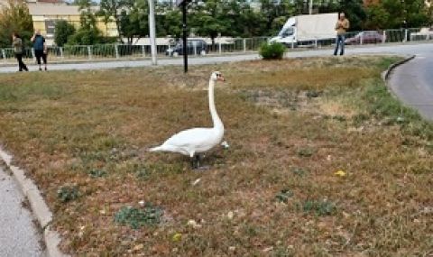 Жители на Пловдив изпратиха снимки на БНТ, че са спасили лебед, излязъл от река Марица. Грациозната птица се е разхождала из тревните площи и по една от улиците в района. По чудо не е ударена от някоя кола.