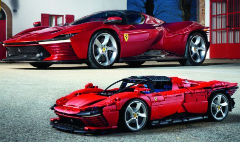 Преди няколко седмици от Ferrari показаха новия си модел Daytona SP3, а сега от LEGO представиха своя умалена версия на модела, направена от популярните блокчета. Играчката е с дължина от 59см, височина от 14см и ширина от около 25см, което е около 8 пъти по-малко от размерите при истинската кола.