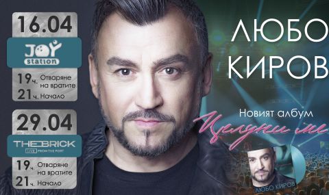 Любо Киров ще представи новия си албум „Целуни ме“ с големи концерти в София, Варна и Лондон. Първата дата е в столицата на 16 април в Joy Station, а втората – в морския град на 29 април в The Brick Port. Следва концерт в лондонската зала Troxy на 22 май.