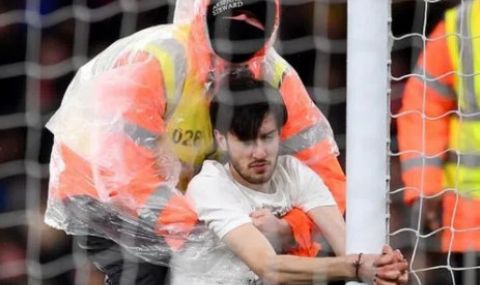 Млад мъж успя да нахлуе на терена по време на двубоя между Арсенал и Ливърпул в сряда вечер и дори направи опит да се завърже за гредата на едната врата. Това се случи през второто полувреме на срещата на “Емиратс”.