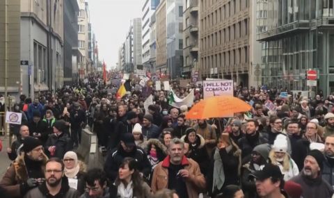 Хиляди демонстрираха в Брюксел срещу ваксинационната кампания и изискването на санитарен пропуск за достъп до заведения и културни събития, предаде БНТ