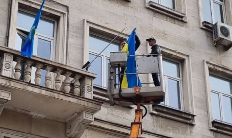 От „Възраждане – София” свалиха знамето на Украйна от сградата на Столичната община.