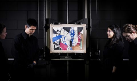 Намерена частично повредена и покрита със слой, наподобяващ твърдо лепило, картината, която междувременно е старателно реставрирана, разкрива според експертите „повратна точка“ в работата на Леже, парижки съвременник на Пикасо.