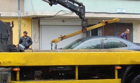 Кола пострада след нелеп инцидент в столицата. Паяк се опита да вдигне автомобила в нарушение, но неуспешно.