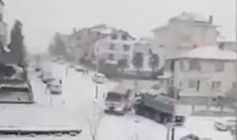 Падналият сняг по Южното Черноморие затрудни трафика в Община Царево. На една от улиците там пожарен автомобил не успя да спре заради сериозното заледяване и се блъсна в камион, съобщават от Нова телевизия.