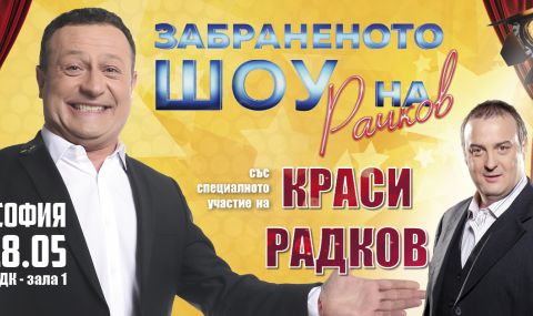 Един от най-обичаните комедийни актьори у нас – Краси Радков ще бъде специален гост на театралната версия на „Забраненото ШОУ на Рачков“ на 18 май в зала 1 на НДК. Събитието е първото от лятното турне на спектакъла, който тази година ще се проведе още в Лондон и Пловдив.