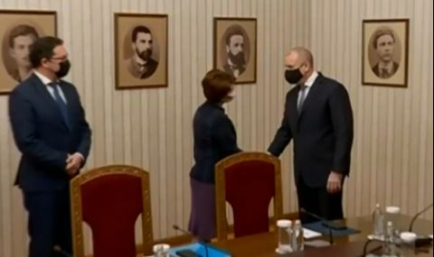 „Уважаема г-жо Атанасова, уважаеми господа. Добре дошли в президентската институция. Вашата партия е втората, с която провеждам консултации за съставяне на кабинет. Вие безспорно сте формация с добър политически опит. Вярвам, че на този опит трябва да съответства и определена политическа мъдрост”. Това заяви президентът Румен Радев при консултациите за съставяне на кабинет с ГЕРБ-СДС.