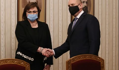„Вярвам във вашата принципност и последователност. БСП винаги е заставала против беззаконието и диктатурата в интерес на огромното мнозинство от хора, а не на малките овластени групи от задкулисието. Обществото ни е дълбоко разделено социално – с растяща бедност, в резултат на порочно управление. Затова се надявам, че вие ще имате водещ принос, защото новото управление има нужда от силен социален вектор”. С тези думи Румен Радев се обърна към представители от социалистическата партия по време на консултациите в Президентството.