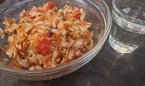 Режете един крайшник от зелка, накълцвате го на ситно с големио нош и го понамачквате нежно, но решително с всичката взаимност на света.