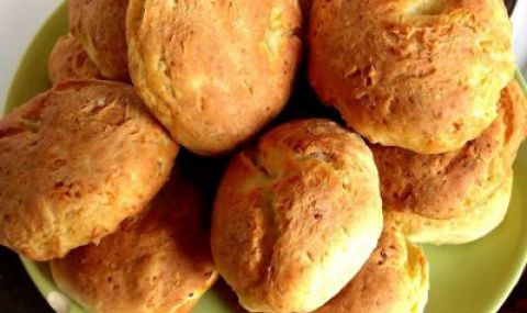 Смесвате млякото със содата и оставяте да шупне. Добавяте яйцето, сиренето, олиото и разбърквате. Брашното го пресявате и започвате да го изсипвате постепенно, докато поеме цялото. Тестото става гъсто и лепкаво.