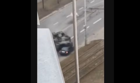 Видео как руски танк минава през цивилен автомобил в Киев разпространи босненската местна обществена радиостанция Радио „Сребреник“.