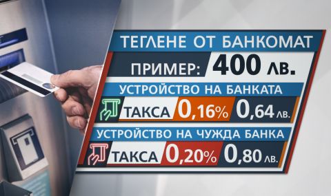 Ако вземем под внимание една от големите банки у нас – разбивката на новите ѝ тарифи показва, че при теглене на пари от банкомат вместо 30 стотинки за услугата, хората ще плащат 0,16 процента от изтеглената сума. Ако устройството, от което теглим пари, е на друга банка, тарифата ще е 0,20 на сто от сумата. Промяната има и в цените на други услуги. Така, ако човек иска да преиздаде пин кода на дебитната си карта, ще плати 5 лева вместо досегашните три. Важно е да уточним, че това са тарифите на само една от банките, които оперират у нас.