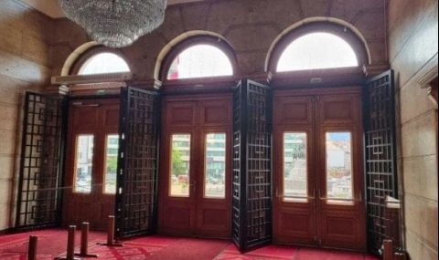 С железни решетки се сдобиха вратите на официалния вход на Народното събрание днес. Те са поставени от вътрешната страна и не са видими откъм фасадата на парламента, пише „Евроком“.