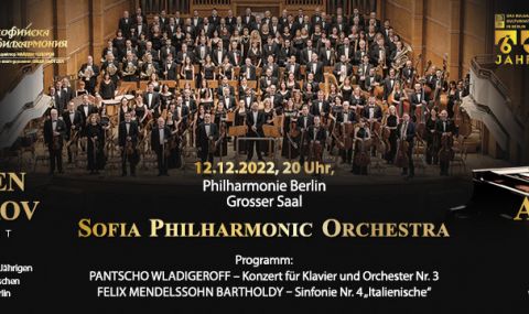 На 12 декември за първи път в своята история Софийската филхармония ще гостува в голямата зала на Берлинската филхармония. Концертът е иницииран от Българския културен институт в Берлин и е посветен на неговата 60-та годишнина.