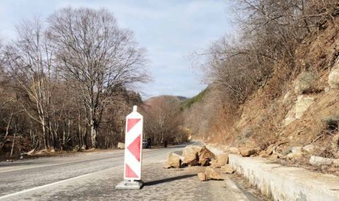 Компрометираният участък се намира на около десетина километра преди Светата обител. Очаква се днес следобед камъните да бъдат разчистени. Причина за свличането им са валежите през последните два дни.