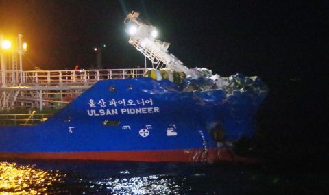 Японски танкер, превозващ химикали, се сблъска с товарен кораб край югозападните брегове на Япония, съобщи днес бреговата охрана, цитирана от Асошиейтед прес. Няма пострадали от 6-членния японски екипаж на танкера и 14-членния китайски екипаж на регистрирания в Белиз товарен кораб, уточнява БТА.