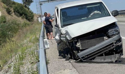 Трима души и дете пострадаха при удар на бус и кола в аварийната лента на АМ „Струма“
