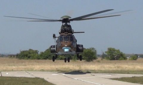 Близо четири часа предиобед продължи и работата на вертолета AS 532 AL Cougar с екипаж от 24-а вертолетна авиационна база за погасяване на пожара от въздуха, тъй като е в труднодостъпна местност.