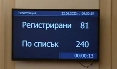 Народното събрание не успя да събере кворум за заседанието в сряда след три опита. По програма то трябваше да започне в 09.00 ч. На него трябваше да се избере нов председател на парламента. Временно изпълняващият длъжността Мирослав Иванов опита да събере кворум на три пъти, но не успя и след всяка регистрация даде по 15 минути почивка. Причината за липсата на кворум е, че депутатите от ГЕРБ, ДПС, ИТН и „Възраждане” не се регистрираха.